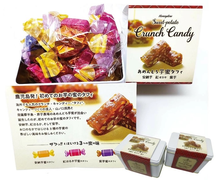 そのコク深くやさしい甘さの蜜を、タフィ(キャラメルのようなソフトキャンディ)に練り込んだ、鹿児島ならではの一品です。